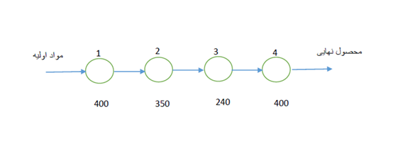 فرض کنید یک فرآیند تولید با چهار ایستگاه کاری به صورت زیر داریم.