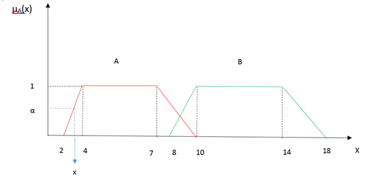 اگر تابع عضویت یک عدد فازی را در نظر بگیریم، برش آلفای این عدد فازی، یک بازه قطعی است که شامل تمام عناصری با مقدار عضویت بزرگتر یا مساوی یک مقدار آلفای خاص (بین 0 و 1) است. به عنوان مثال، اعداد فازی A و B را در نظر بگیرید. برش آلفای این اعداد بازه ای قطعی از مقادیر پشتیبان این اعداد می باشد.